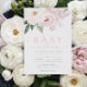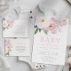 baby in bloom pink flowers baby shower invitation