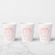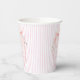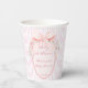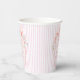 Baby in bloom retro pink stripes preppy bow coquette baby shower monogrammed paper cups, hand writing retro girls baby shower personalized paper cups, coquette bow baby shower personalized table decor, vintage baby shower printed paper cups summer baby shower personalized coffee cups, pink spring flower baby shower personalized paper cups