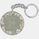 Send your guests home with a beautiful, memorable keepsake! This charming keychain is a perfect party favour for a baby shower. It features an elegant, gender-neutral design with a soothing sage green background and a delicate border of soft watercolor floral blossoms.