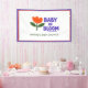 Celebrate the sweetest new arrival with this cheerful “Baby in Bloom” baby shower banner, featuring a bold tulip illustration and a vibrant modern color palette. The playful floral graphic paired with bright purple lettering creates a fresh, joyful look that instantly sets the tone for a stylish baby shower celebration.