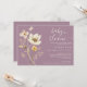 A pretty baby shower invitation with a sprig of assorted watercolor wildflowers. The boho look features a dusty purple card with Baby In Bloom in a handwritten script. Personalise the key details such as mum to be name, date and time of event, location, RSVP and registry information.