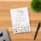 This sweet and simple baby shower invitation is perfect for welcoming a little one with a touch of nature. The front of the invite features the title "baby in bloom" in a charming script and serif font. Below the title, the invitation details are clearly presented, including the date, time, location, and registry information. The bottom of the invitation is adorned with a beautiful field of hand painted watercolor wildflowers, adding a touch of color and whimsy. This invitation is fully customizable with your own details, making it a truly unique keepsake for the special day. Printed on high-quality card stock, this invitation is sure to impress your guests and set the tone for a beautiful and memorable baby shower.