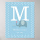 Cute initial monogram nursery poster, featuring your baby's name and the year that they arrived with sweet polka dot parent and baby elephants. A lovely keepsake to treasure!