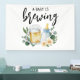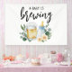 Watercolor Beer Mug and Feeding Bottle Baby Is Brewing Baby Shower Cheers Banner. Brewery Unisex.