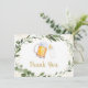This thank you card features watercolor greenery with a beer and baby bottle and gold foil accents.