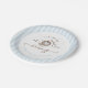 Adorable paper plates designed with soft blue vertical stripes and artistic illustrated details. A stylish and coordinated addition to your baby shower table setting.
