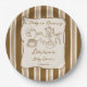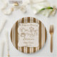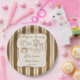 Baby is brewing retro stripes coffee baby shower personalized printed paper plates, vintage retro brown stripes hand drawn coffee baby shower monogrammed paper plates, hand writing baby shower printed paper plates, a baby is brewing baby shower personalized table decor