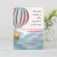 Baby Shower invitation features a cute bear in a hot air balloon flying above the clouds describing the baby is coming.