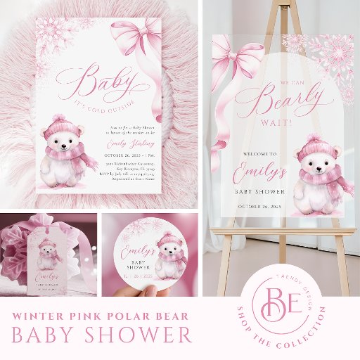 Cute and practical winter-themed paper plates featuring a pink baby bear. Designed to match your winter wonderland baby shower décor.