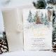 This winter-themed baby shower invitation is a charming blend of snowy landscapes, adorable bear cubs, mama bear, and festive evergreen trees.