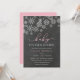 Brrr! Frosty chic invitations for winter baby showers feature a top border of white snowflakes against a chalkboard background, with "baby it's cold outside" in pink and white lettering. Personalize with your baby girl shower details beneath using the template fields. Cards reverse to solid pale pink.