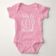 Cute Christmas baby bodysuit features "baby it's cold outside" in white hand lettered typography accented with snowflakes.