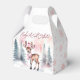 Baby it's cold outside girl baby deer baby shower favour box for winter themed baby shower. Cute baby deer wearing pink winter hat and scarf pink trees snowy background girls baby shower template favour box