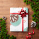 Christmas wrapping paper with snowmen made from marshmallows in a cup of hot chocolate. Vintage mint mixed with traditional Christmas reds and whites create a unique colour pallet. The text reads "Baby it's cold outside!" which gives it a fun twist.