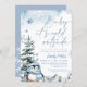 Baby, it's cold outside. Blue winter wonderland baby shower invitation for a boy.
