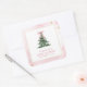Elegant baby shower stickers featuring a cute Christmas tree and modern typography on a beautiful watercolor blush pink background.
