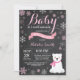 Baby Its Cold Outside Polar Bear Winter Girl Baby Shower Invitation. Girl Baby Shower Invitation. Winter Holiday Baby Shower Invite. Pink and White Snowflakes. Snowman and Chalkboard Background. For further customisation, please click the "Customise it" button and use our design tool to modify this template.