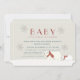 This cute and modern baby shower invitation features a light beige background with mom polar bear and cub polar bear with scarves on the snow with faux silver glitter snowflakes. The reverse side features a slate blue background with patterns of polar bears, berries, leaves, and poinsettia flowers. Personalize it for your needs. You can find matching products at my store.