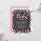 Trendy girl winter themed baby shower invitations. This stylish design features a pink and white snowflake border and script font on a chalkboard background.