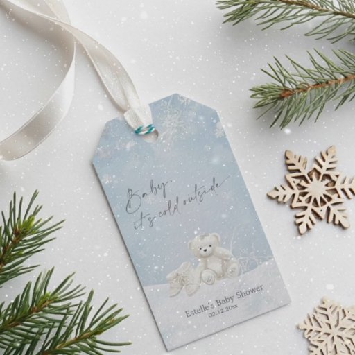 A delightful and practical souvenir for your guests! This elegant acrylic keychain features the lovely "Baby, It's Cold Outside" theme with the sweet, soft teddy bear and delicate snowflakes on a serene snowy background. It's a perfect, memorable baby shower favor to thank your attendees. The durable, high-quality design is gender-neutral and beautifully captures the magic of your winter wonderland celebration.