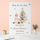 This enchanting baby shower sign features a cute watercolor illustration of a baby bottle and Christmas tree in winter tones.