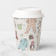 These gender neutral winter Baby Shower paper cups feature a cute pattern of hand-drawn illustrations of Christmas pajama bodysuits, plush animals, baby bottles, bibs, pacifiers, presents and tiny yellow stars. Elegant ivory background.
