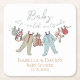 These gender neutral "Baby it's cold outside" winter Baby Shower coasters features a cute hand-drawn pattern of Christmas pajama bodysuits, plush animals and bibs hanging on a clothesline. Customisable name, event and date.