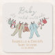 These gender neutral "Baby it's cold outside" winter Baby Shower coasters features a cute hand-drawn pattern of Christmas pajama bodysuits, plush animals and bibs hanging on a clothesline, all against an elegant ivory background. Customisable name, event and date.