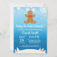 Baby its Cold Outside Winter Gingerbread Man Baby Shower. Boy Baby Shower. White and Blue Snowflake. Winter Holiday Baby Shower Invite. Blue Background. For further customisation, please click the "Customise it" button and use our design tool to modify this template.