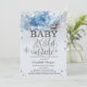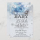 Cute baby shower invitation features a snowflakes and forest. These baby shower invitations are easily customised for your event by simply adding your details.