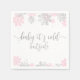 Modern baby shower paper napkin featuring motifs of the winter pink and silver glitter snowflakes with the text says "Baby it's cold outside".