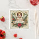 Encircling the angel are lush festive elements, including pine branches, holly leaves, red berries, and a bright red poinsettia, which bring a vibrant holiday spirit to this sacred image. Golden stars and delicate flourishes add a celestial touch to the warm, traditional colours of gold, red, and green, creating a festive, timeless look. Perfect for decoupage, holiday gatherings, or Christmas crafting, these napkins capture the essence of faith and joy during the season. Available in four colours and six sizes, they add elegance and meaning to any Christmas decor project.