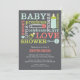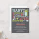 This baby shower invitation features a colourful and bold mixture of modern baby icons.