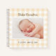 Baby memory journal to document the 1st year of life of your newborn baby girl or boy. Personalise it with a photo, their name, birth stats, and any custom text on the back. Gender neutral notebook design with a yellow gingham plaid pattern. Family keepsake perfect for a spring birthday.