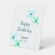 Baby kids 1st birthday add name blue green pastel pedestal sign