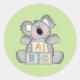 Uses these cute and adorable stickers for envelope seals or baby shower game favours. Design features a cute and adorable animation graphic of a baby koala bear with a set A B C blocks.