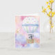 Adorable baby Koala floating up towards the moon in a lovely hot air balloon. The exhilaration is contagious as a family welcomes the arrival of a new baby! The colours of the balloon are gender neutral in shades of purple, blue, green, yellow and pink. The inner left side of the card has a spot to add the baby's name if you wish!