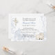 Christian invitation with lamb on pale blue floral and butterfly background and cross with two hearts. This invitation is suitable for first holy communion, confirmations, baptisms or christenings. Can be easily customised with the details of your event. Invitations come complete with envelopes.