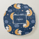 This adorable round throw pillow has a pattern of a baby lamb on a crescent moon. There are also clouds and stars and the background is a pretty blue. Pillow may be personalised with a first name and initial on the front and a custom message on the back. (Text may be removed per your preference.)
