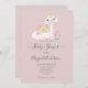 Baby Llama White Pink Flowers Baby Shower Invitation