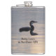 The flask itself is fine. It’s a cheap flask, obviously bought in bulk, however am prepared to overlook that. Given that it is a personalized item, I would have liked to have seen gift boxing instead of the generic packaging. Terrible printing, and/or quality. It’s a cheap, tacky vinyl. It is not cut straight and is also applied in a way that it is overhanging the bottom, causing the glue to catch on items and it will eventually roll and tear, damaging the wrap.