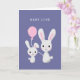 Sweet illustration of a baby bunny and a mother rabbit holding a pink balloon. It's a congratulations card for a newborn baby girl.