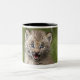 Baby Lynx (Lynx Canadensis) Looking Over A Two-Tone Coffee Mug