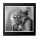 Black and white photograph of a baby cherry-crowned Mangabey monkey with beautiful brown eyes, contemplating life.