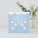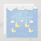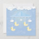 Baby mobile with duckling toy and cloud on blue. Happy Birthday card, Shower card paper art style
