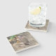 The coasters are gorgeous, a quality feel and heavy weight. They look like a precious archeological find. A rustic stone juxtaposed with a modern floral black and white print. I like the way the print goes slightly imperfect on the cut stone edges giving them a kind-of natural beauty.