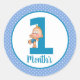 Baby Month Stickers with Cute Babies, White Polka Dots On blue Background