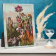 vintage art with painting of a group of ladies of biblical times discovering a baby in a basket drifting on the river.