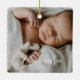 Announce and welcome the arrival of your new baby with our simple and modern baby birth announcement keepsake ornament. The simple and elegant design beautifully displays the baby's Name in the script, date of birth, time of birth, and birth stats. Background color can easily be changed to suit your preference by clicking on details and editing using Zazzle's design tool. Add your baby's photo to the back of the ornament. Design by Moodthology Papery
