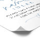 My thoughts on this product was excellent. Well printed in a gloss finishing and just the size l ordered. It arrived in good condition and am overall satisfied with the product. The printing turned out great. I was quite surprised with the finishing touch to the poster. The semi gloss was just right and a perfect size to display at the wedding.